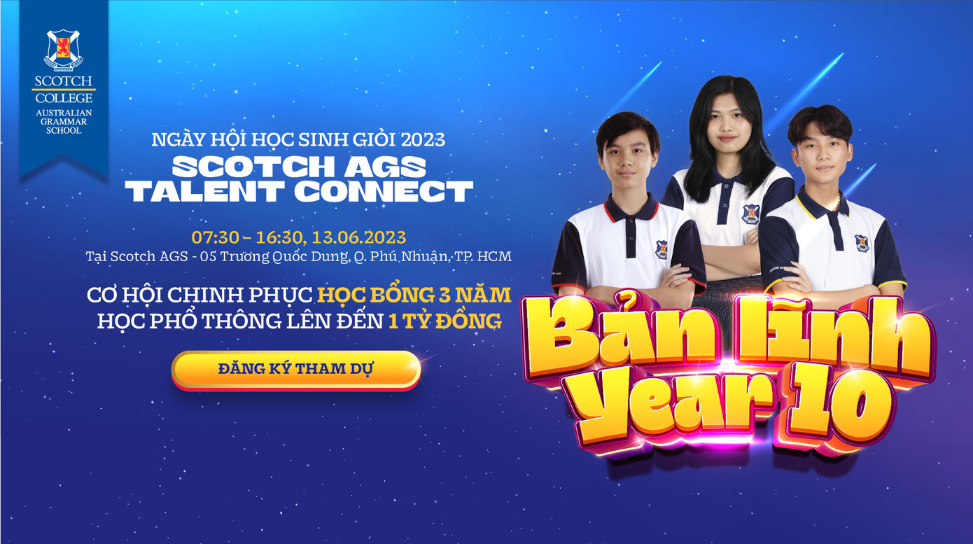 Với tên gọi “Scotch AGS Talent Connect For Year 10 Newbie”, sự kiện dự kiến quy tụ hàng trăm học sinh giỏi đang học lớp 9, chuẩn bị sang lớp 10 trên địa bàn TP.HCM. Trong một ngày trải nghiệm, các bạn trẻ sẽ vừa học, vừa chơi thông qua nhiều hoạt động kết nối, tranh tài thú vị.