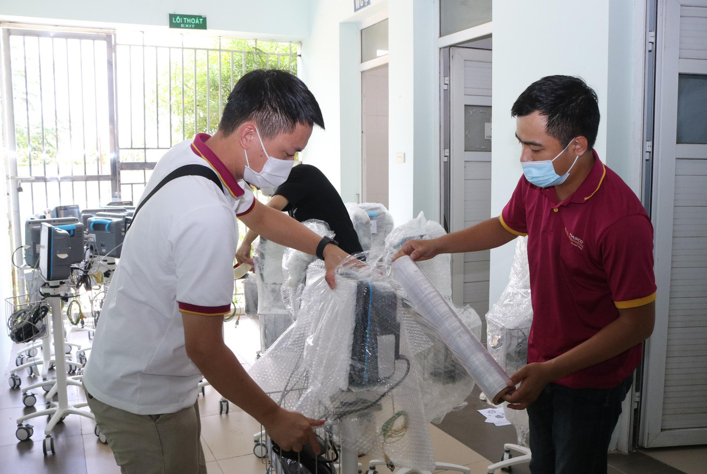 PGS.TS Đào Xuân Cơ - Phó giám đốc Bệnh viện Bạch Mai cho biết: Ngay từ chiều hôm qua, các trang thiết bị, vật tư y tế đã được đóng gói cẩn thận để đưa lên tàu và niêm phong. Toàn bộ số thiết bị trên của trung tâm hồi sức lớn nhất miền Bắc, được thiết lập trong cao điểm dịch COVID -19 tại Bắc Giang do tập đoàn Sungroup tài trợ. Số thiết bị này đủ sử dụng cho 100 giường hồi sức. Ngoài trang thiết bị hiện đại, trong những ngày tới Bệnh viện Bạch Mai tiếp tục cử hàng trăm cán bộ, nhân viên y tế vào để điều trị, chăm sóc những bệnh nhân Covid-19 tại Trung tâm Hồi sức tích cực - Bệnh viện dã chiến 16. TP Hồ Chí Minh, cùng đồng bào miền Nam vượt qua làn sóng dịch Covid-19.