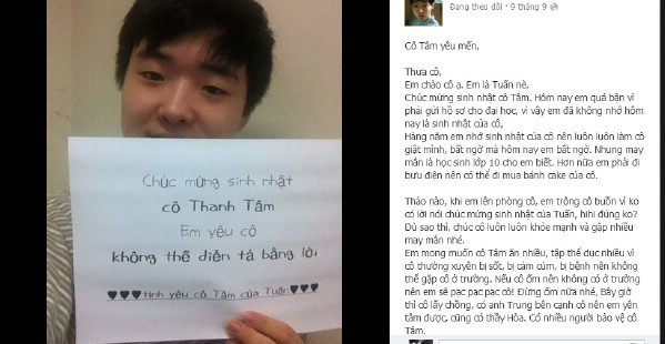 Đặc biệt, trong ngày sinh nhật của mình, cô vẫn cảm nhận được sự ấm áp bởi tình yêu của học trò, những món quà đầy ý nghĩa các em tự tay làm tặng cô. Thậm chí một học sinh Hàn Quốc có nick name Tuấn Jeon đã viết thư bằng tiếng Việt gửi đến cô giáo Thanh Tâm của mình.