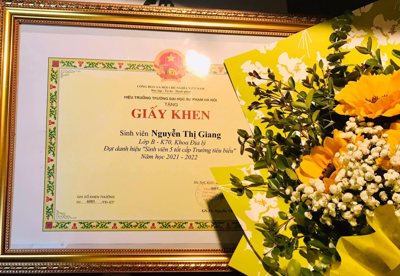Với tình yêu cháy bỏng với nghề giáo, nữ sinh đã không ngừng nỗ lực và đạt được nhiều thành tích đáng ngưỡng mộ trong suốt 4 năm học dưới mái trường Đại học Sư phạm Hà Nội. Giang liên tục nhận học bổng trong 8 học kỳ với xếp loại rèn luyện Xuất sắc, đồng thời tích cực tham gia các hoạt động Đoàn, Hội, nghiệp vụ sư phạm và ngoại khóa, đảm nhiệm nhiều chức vụ quan trọng. Bên cạnh đó, cô nàng còn tham gia các hoạt động tình nguyện, đóng góp sức trẻ cho cộng đồng. Những nỗ lực không ngừng nghỉ đã mang lại cho nữ sinh quê Nghệ An nhiều danh hiệu cao quý như Sinh viên 5 Tốt cấp trường tiêu biểu, Thanh niên tiên tiến làm theo lời Bác, Học bổng thắp sáng ước mơ tuổi trẻ,...