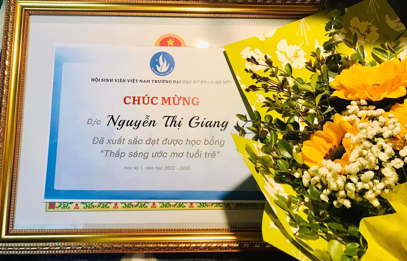 | Giang đạt nhiều thành tích trong học tập và các hoạt động Đoàn - Hội. |