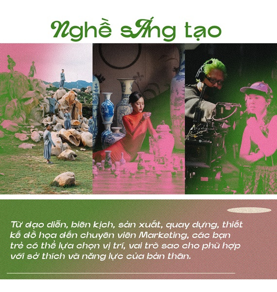 Những ngành nghề liên quan đến sáng tạo đa dạng lĩnh vực như thiết kế đồ họa, sản xuất phim ảnh, quảng cáo, truyền thông,... đều mang đến những thử thách và cơ hội riêng, mỗi cá nhân có thể tự do đưa ra những ý tưởng đột phá và thực hiện những sản phẩm độc bản.
