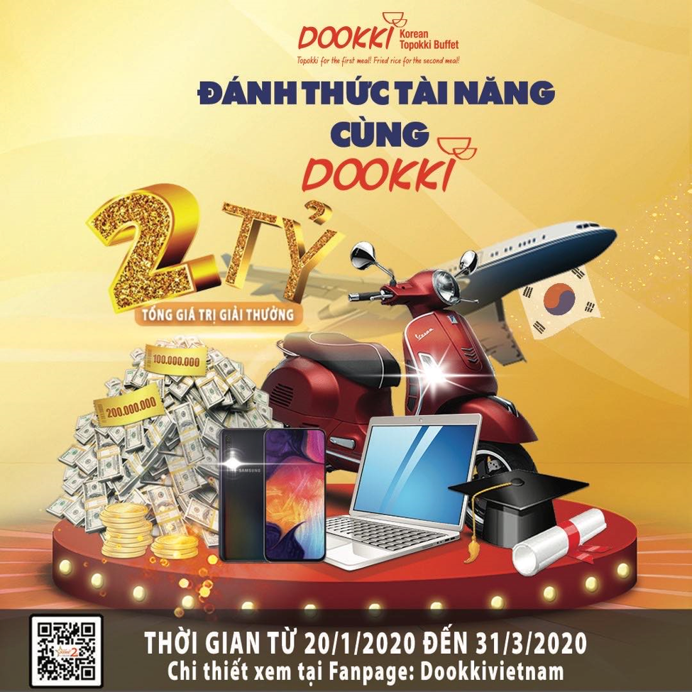 Với những bạn mơ ước được đến Hàn Quốc để gặp các “oppa”, tình yêu của đời mình thì không còn là ước mơ xa xôi nữa đâu vì đã có Dookki rồi. “Đánh thức tài năng Việt” với tổng giải thưởng lên tới 2 tỷ đồng hứa hẹn sẽ đem đến cho bất kì khách hàng nào may mắn với phần thưởng xứng đáng với điều kiện bạn chỉ cần thể hiện một chút tài nhỏ của mình.