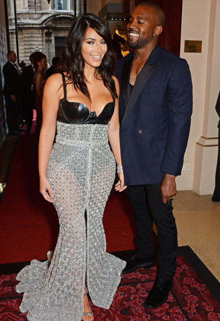 Kim Kardashian nắm tay "ông xã" Kanye West tới dự lễ trao giải Người đàn ông của năm do tạp chí GQ bình chọn, tối 2/9, tại London, Anh.