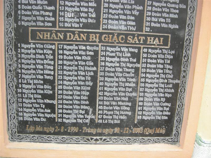 Hai gia đình ông Thướng và ông Lịch mỗi nhà chết 4 người. Sáng hôm sau chúng còn bắt 8 người mang ra cống hạ đâm chết, vứt xác xuống sông.