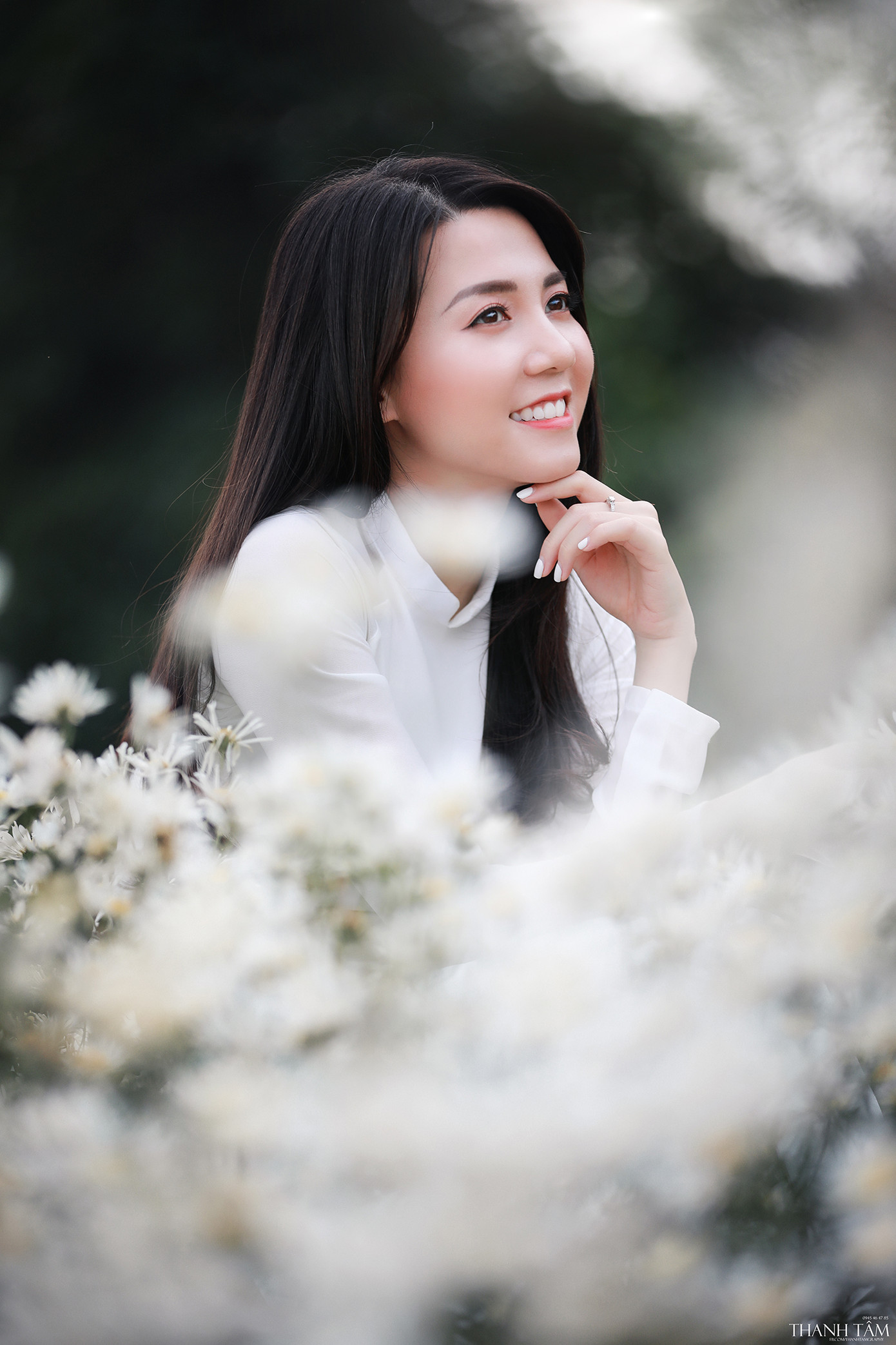 Vì đã một lần lỡ hẹn chụp ảnh với cúc họa mi nhưng vì yêu màu trắng tinh khôi dịu dàng của loài hoa này nên Bảo Anh đã quyết định thực hiện album bên loài hoa này.