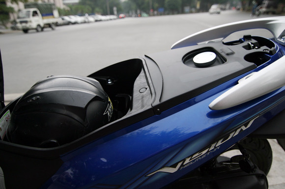 Cốp xe khá rộng rãi, đủ rộng để chứa 2 mũ bảo hiểm loại nửa đầu và đủ sâu để đặt 1 mũ bảo hiểm loại trùm kín đầu (không có bao cằm). Dưới cốp là chỗ đổ xăng như những chiếc xe thông thường, không có gì đáng nói nếu như người lái luôn phải cúi xuống để cắm chìa khóa mở cốp. Tay nắm sau xe được thiết kế để dễ cầm nắm, cộng thêm trọng lượng nhẹ giúp việc nâng đuôi xe hay xoay đầu rất dễ dàng, kể cả với phái yếu.