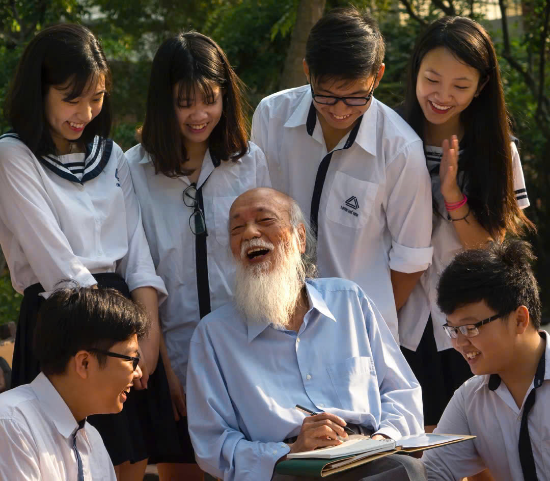 | Cố PGS Văn Như Cương cùng học sinh Lương Thế Vinh |