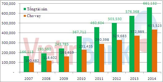 Xét về một số chỉ tiêu khác như tổng tài sản và cho vay khách hàng, CTG là một trong số ít nhà băng có sự tăng trưởng đều đặn qua nhiều năm liền. Theo đó, đến cuối năm 2014, tổng tài sản của VietinBank đạt hơn 661tỷ đồng, tăng gần 15% so với cuối năm trước, hoạt động cấp tín dụng tăng 18,2% với số dư 543 nghìn tỷ đồng. Trong năm 2015, CTG dự kiến tổng tài sản tăng tối thiểu 15%, nguồn vốn huy động tăng 13 - 15%, dư nợ tín dụng tăng 13 - 15%, tỷ lệ nợ xấu dưới 3%, lợi nhuận trước thuế tương đương hoặc cao hơn năm 2014,…
