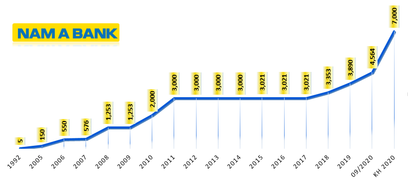 Quá trình tăng vốn điều lệ từ khi thành lập đến nay của Nam A Bank