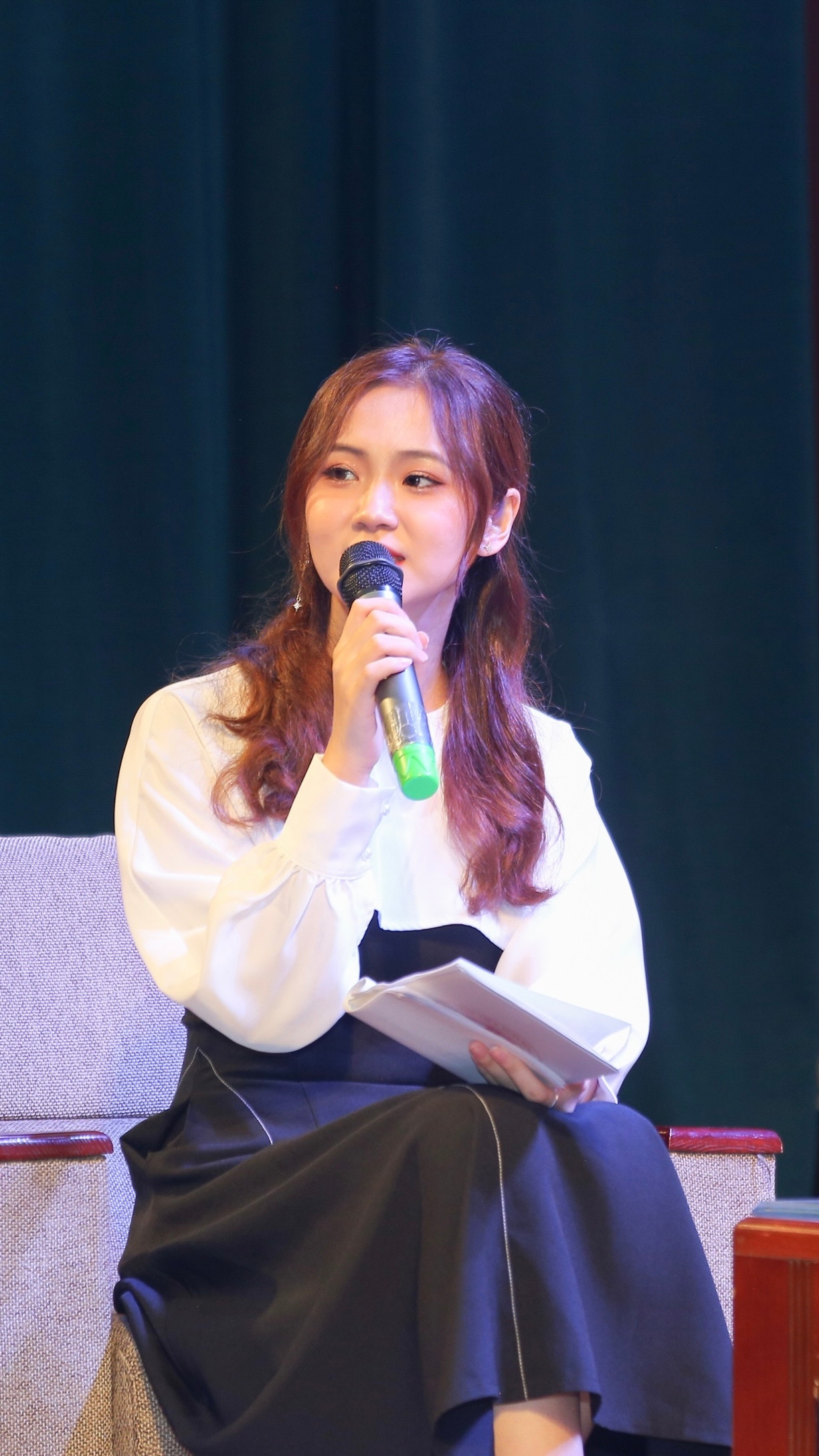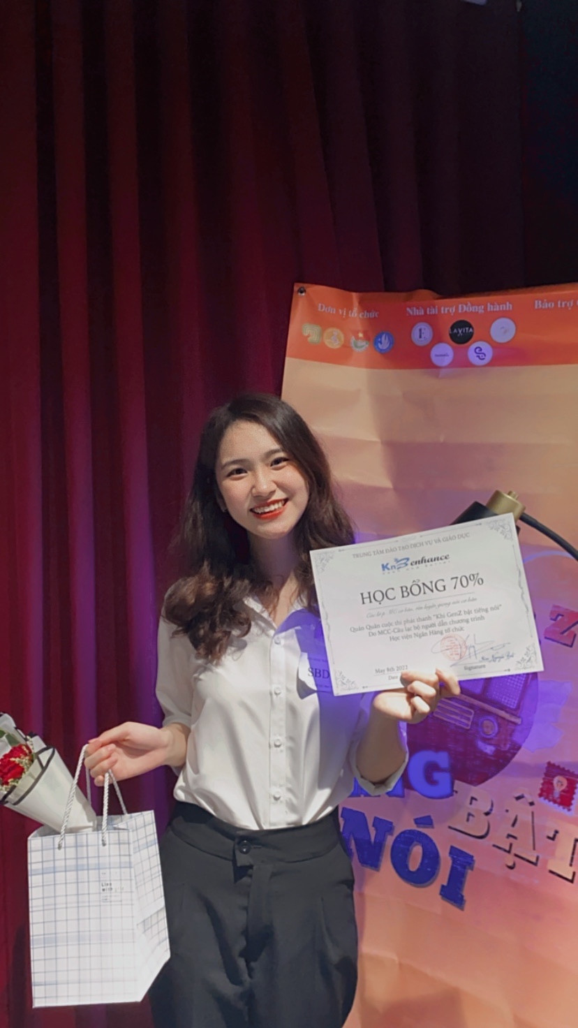 | Hiện tại, cô nàng cũng đang đảm nhiệm vị trí Chủ nhiệm Câu lạc bộ MC Học viện Ngân hàng (MCC). |