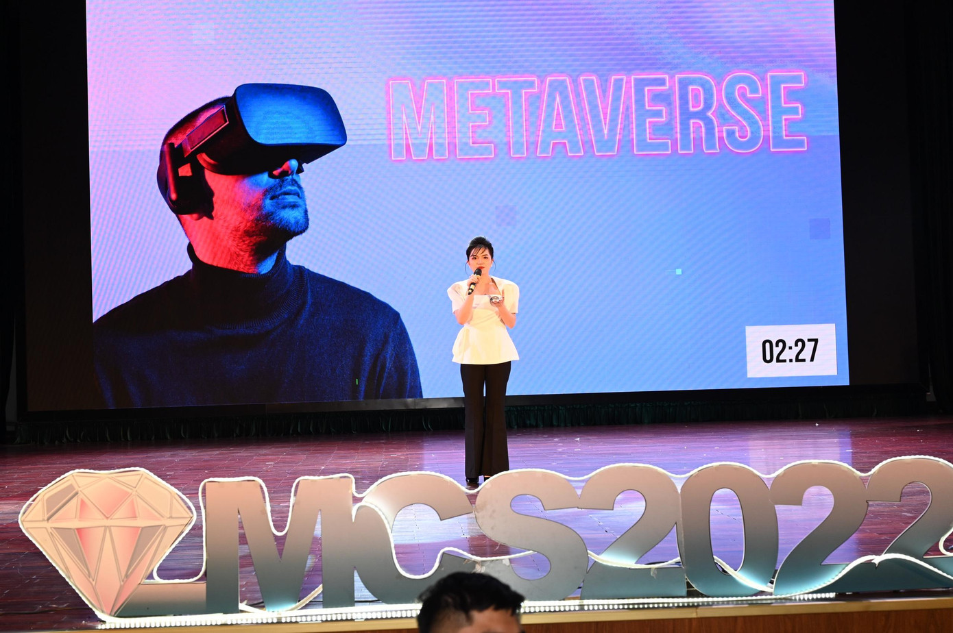 | Khánh Huyền trong các phần thi diễn thuyết tại cuộc thi MC Spotlight 2022. |