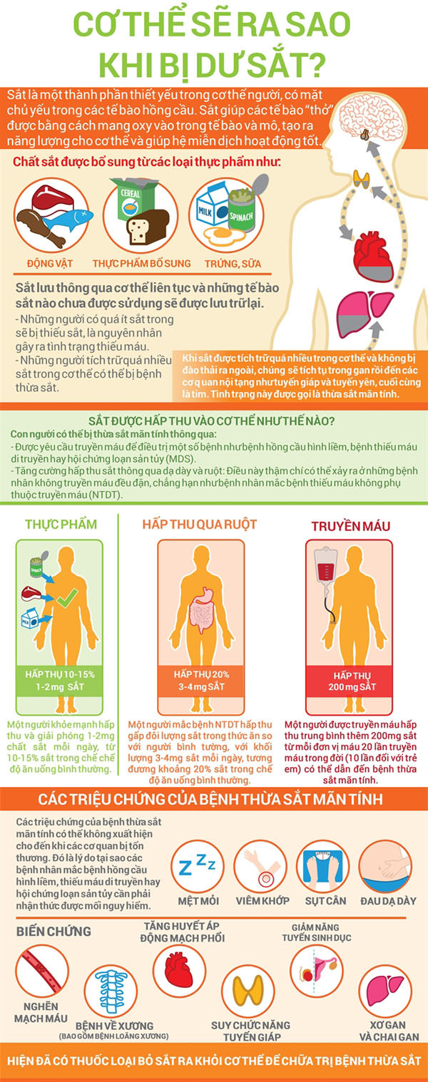 Sắt là một thành phần thiết yếu trong cơ thể người, có mặt chủ yếu trong các tế bào hồng cầu. Nhưng bạn có biết cơ thể chúng ra sẽ ra sao nếu như bị dư sắt