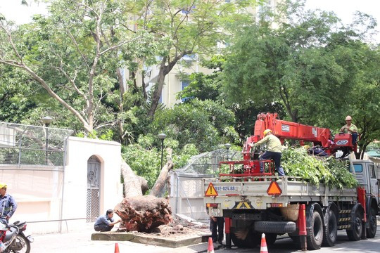 Nhận được tin báo, Công an quận 3 kết hợp CSGT TP HCM phong tỏa hiện trường. Ngay sau đó, Công ty TNHH MTV Công viên Cây xanh TP HCM cũng cửa lực lượng đến tìm hiểu nguyên nhân và tiến hành cắt tỉa, thu dọn.
