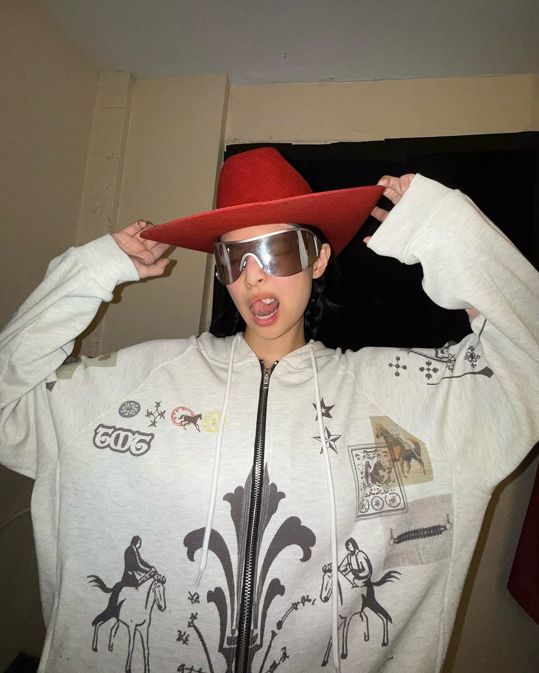 Jennie BLACKPINK lăng xê họa tiết rằn ri, mẫu áo jersey, biến tấu khăn thành áo yếm. Các món phụ kiện như nón cao bồi, kính viễn tưởng tô điểm cho diện mạo của giọng ca Mantra.