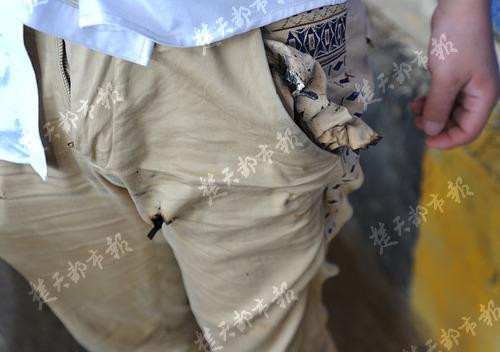 Quá hoảng loạn, Zhang vội vàng cởi quần đang mặc bất chấp anh đang ở giữa phố đông người. Nhờ cách xử lý này mà anh không bị thương nghiêm trọng. Tuy nhiên, chiếc điện thoại bị tách thành ba phần và ngọn lửa đã làm thủng nhiều lỗ trên quần.