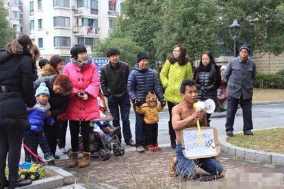 Việc làm của người đàn ông này đã thu hút sự chú ý của người dân gần đó, họ đứng thành đám đông để theo dõi "màn kịch hay". Có người nhanh tay chụp ảnh và đăng tải trên mạng xã hội. Rất nhanh sau đó, những bức hình đã trở thành chủ đề bàn tán sôi nổi trên các diễn đàn. Đa số mọi người đều cho rằng người đàn ông này đã dũng cảm nhận sai và hứa sẽ sửa chữa, người vợ nên cho anh ta một cơ hội.