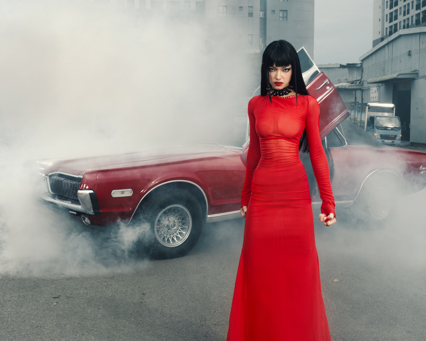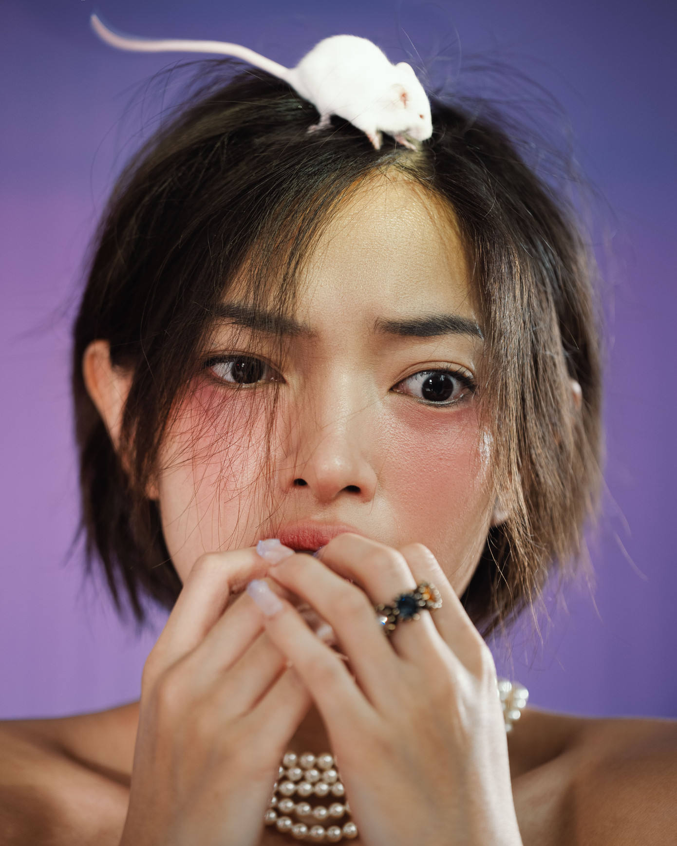 Bên cạnh layout trang phục và make-up, nàng fashionista đã "mạnh tay” đầu tư vào bối cảnh và "nhân vật” phụ như những chú chuột đại diện cho nỗi sợ, chú mèo đại diện cho sự dũng cảm. Đặc biệt, trong concept giận dữ, Châu Bùi ghi dấu ấn với chiếc xe cổ màu đỏ tương đồng với trang phục, điểm thêm chút cổ điển vào shoot ảnh.
