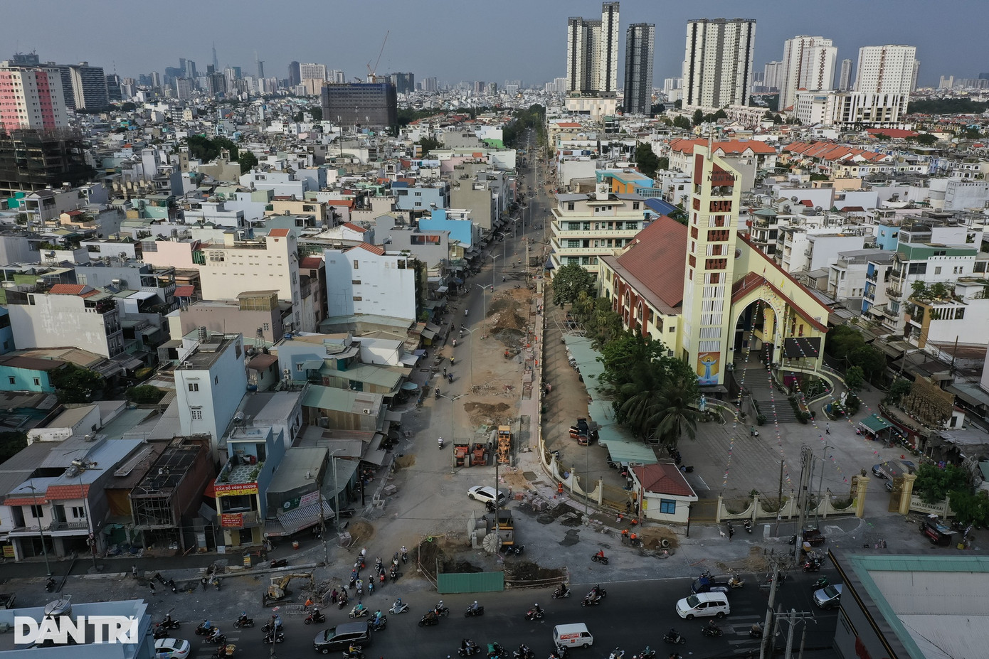 Theo ghi nhận của phóng viên Dân trí, hàng chục công nhân đang tất bật thi công các hạng mục cuối để có thể đưa dự án về đích đúng hẹn, góp phần chỉnh trang đô thị, nâng cao chất lượng sống của người dân.