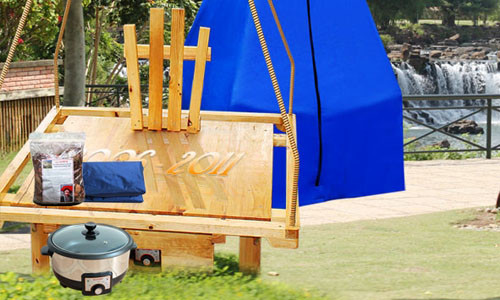 Ngày cuối tuần, cơ sở thiền kết hợp với xông hơi miễn phí tại phường Tân Tiến, TP Biên Hoà tỉnh Đồng Nai khá đông người. Trong màu áo lam giản dị, phong thái điềm tĩnh, Nguyễn Văn Tứ, chủ nhân và cũng là người phát minh ra lều xông hơi cho biết lều được thiết kế bằng gỗ thông chắc chắn, có mùi thơm dễ chịu, được bao bọc bởi tấm bạt kín hình kim tự tháp. Nếu thấy quá nóng, quá nhiều hơi có thể kéo khóa cho cửa mở để giảm nhiệt. Trong lều có tấm gỗ tựa lưng dành cho ai chưa quen ngồi, đồng thời cũng giúp lưng thẳng đứng khi thiền. Phía dưới là nồi nước xông nấu loại thuốc dân gian, gia truyền của người Dao đỏ chuyển về từ Lào Cai.