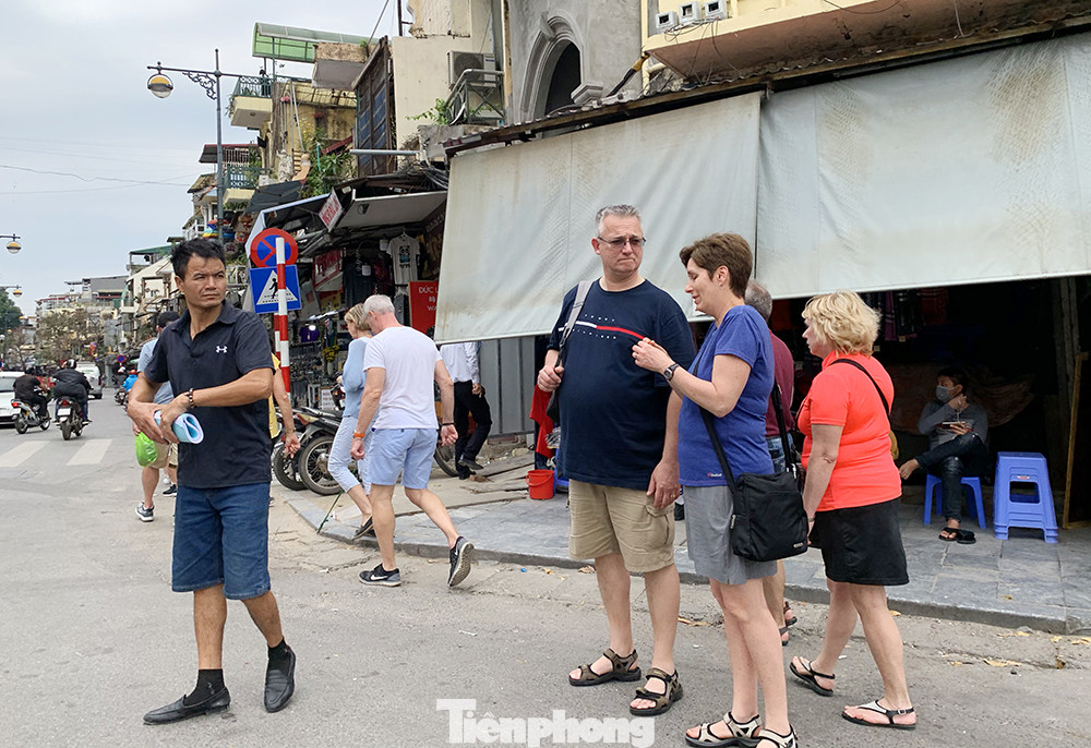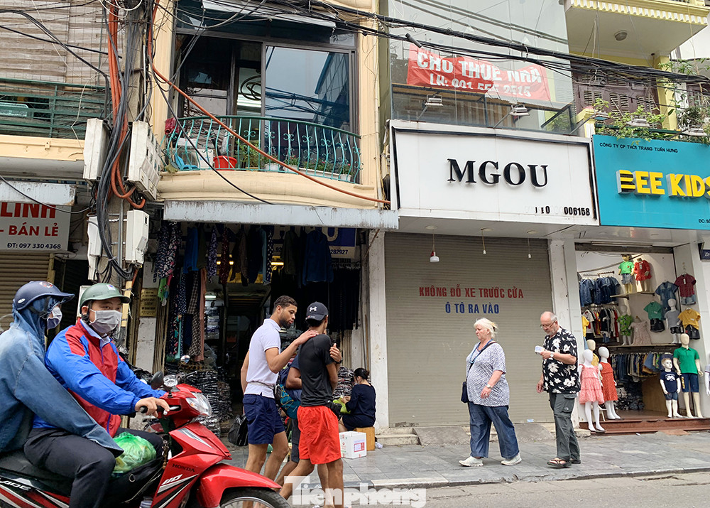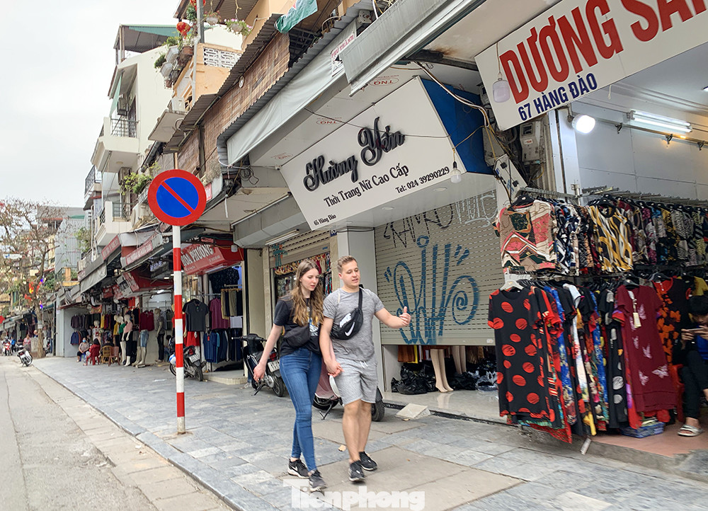 Một vài du khách nước ngoài dạo trên phố Hàng Đào vẫn không đeo khẩu trang phòng dịch