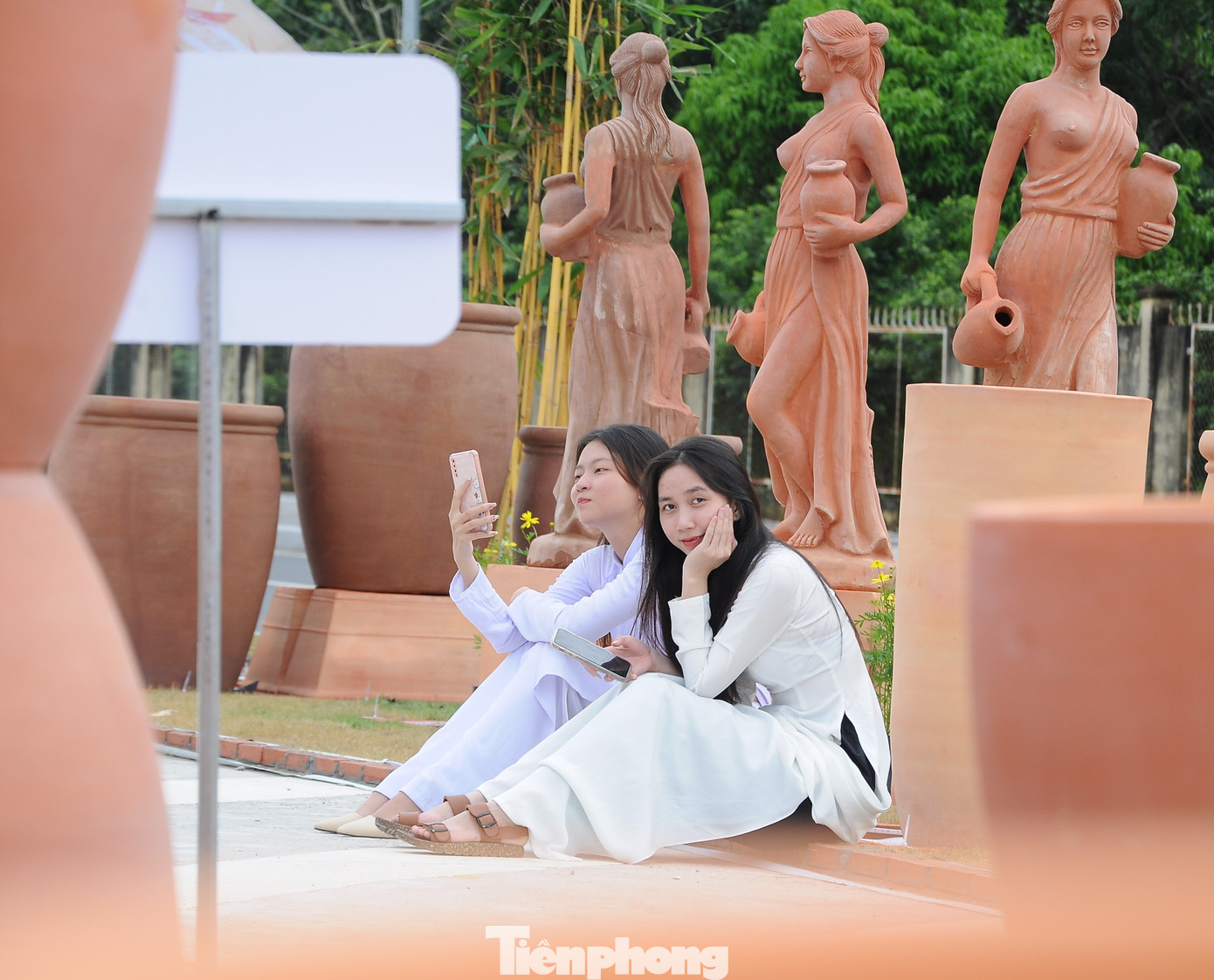| Bạn trẻ check in tại Con đường gốm đỏ. |