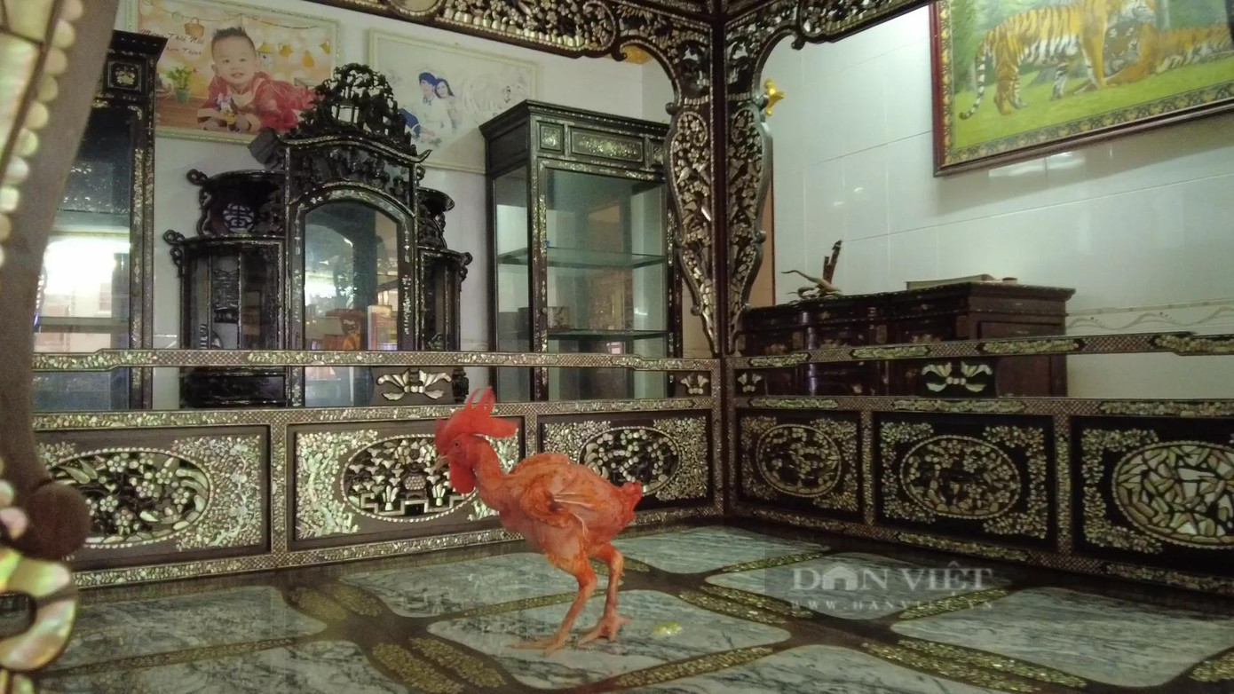Vì những yếu tố độc, lạ nên gia chủ xem "con gà khỏa thân" đến từ Peru như thú cưng, ban ngày thả tung tăng trong sân vườn, ban đêm cho ngủ mùng trong ngôi biệt thự đầy ắp đồ cổ.