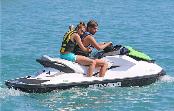 Lourdes cưỡi môtô nước cùng một chàng trai.