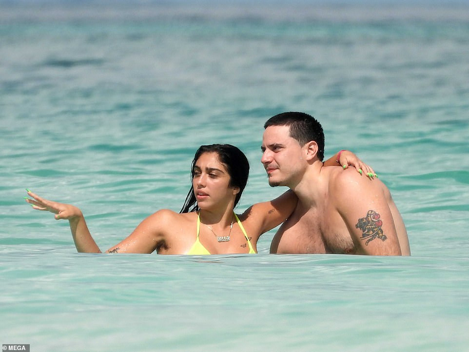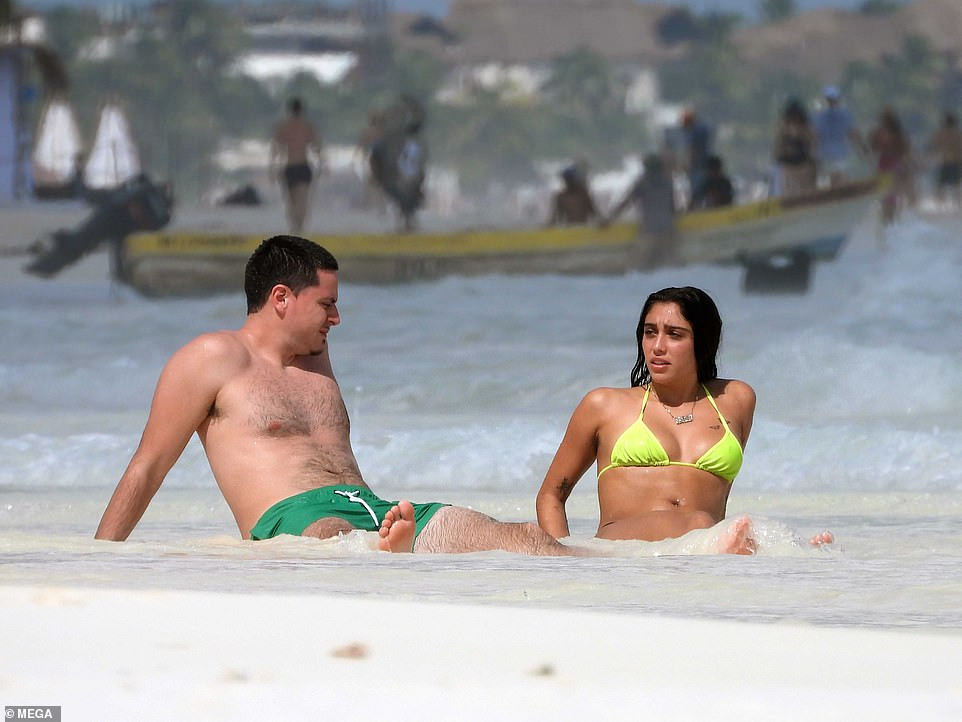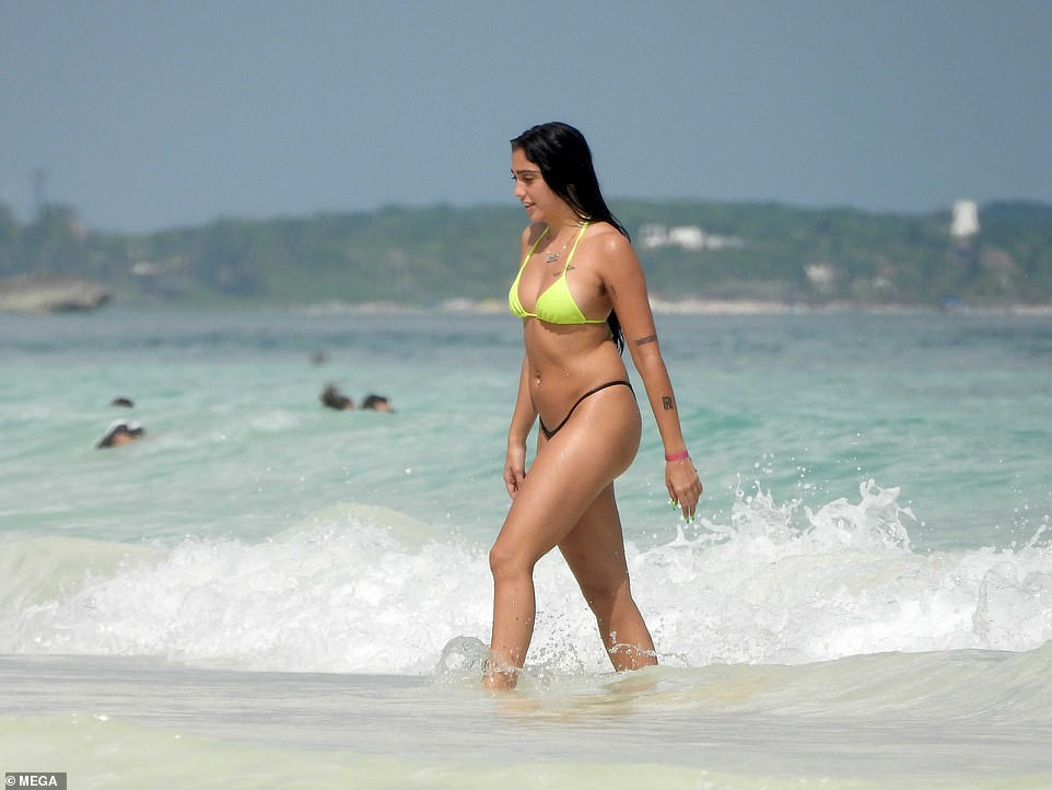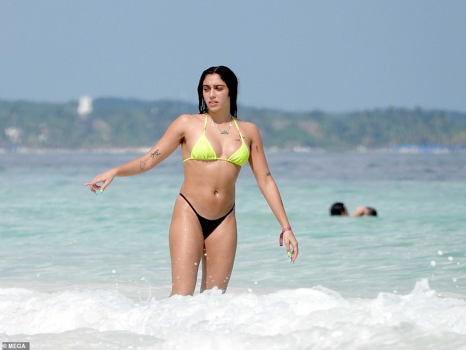 Lourdes Leon mặc bikini xanh neon rực rỡ thả dáng nóng bỏng trên biển Tulum mới đây.