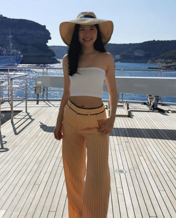 Tạo dáng không khác gì người mẫu chuyên nghiệp trước ống kính. Chân Như Tề sinh năm 2004, là con gái duy nhất của Chân Tử Đan trong số ba người con (cả con vợ trước).