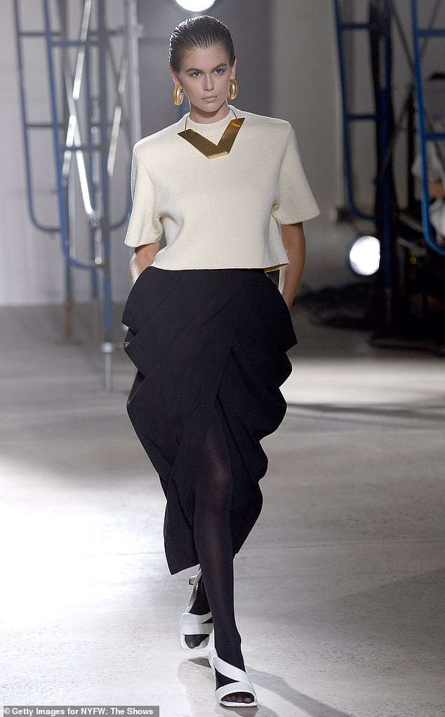 Siêu mẫu 18 tuổi Kaia Gerber - con gái mỹ nhân huyền thoại Cindy Crawford tối qua cũng tham gia trình diễn trong show.
