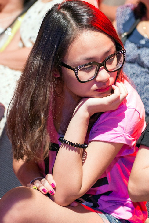 Trong quá trình ghi hình vòng Ghép đôi tại trường quay, phóng viên đã ghi lại nhiều hình ảnh hậu trường thú vị. Trong số đó là sự xuất hiện của một khán giả đặc biệt, vừa đến cổ vũ cho mẹ mình, vừa cổ vũ cho các sao nhí Đồ Rê Mí. Đó chính là Thiện Thanh – cô con gái xinh đẹp 17 tuổi của giám khảo Thanh Lam.