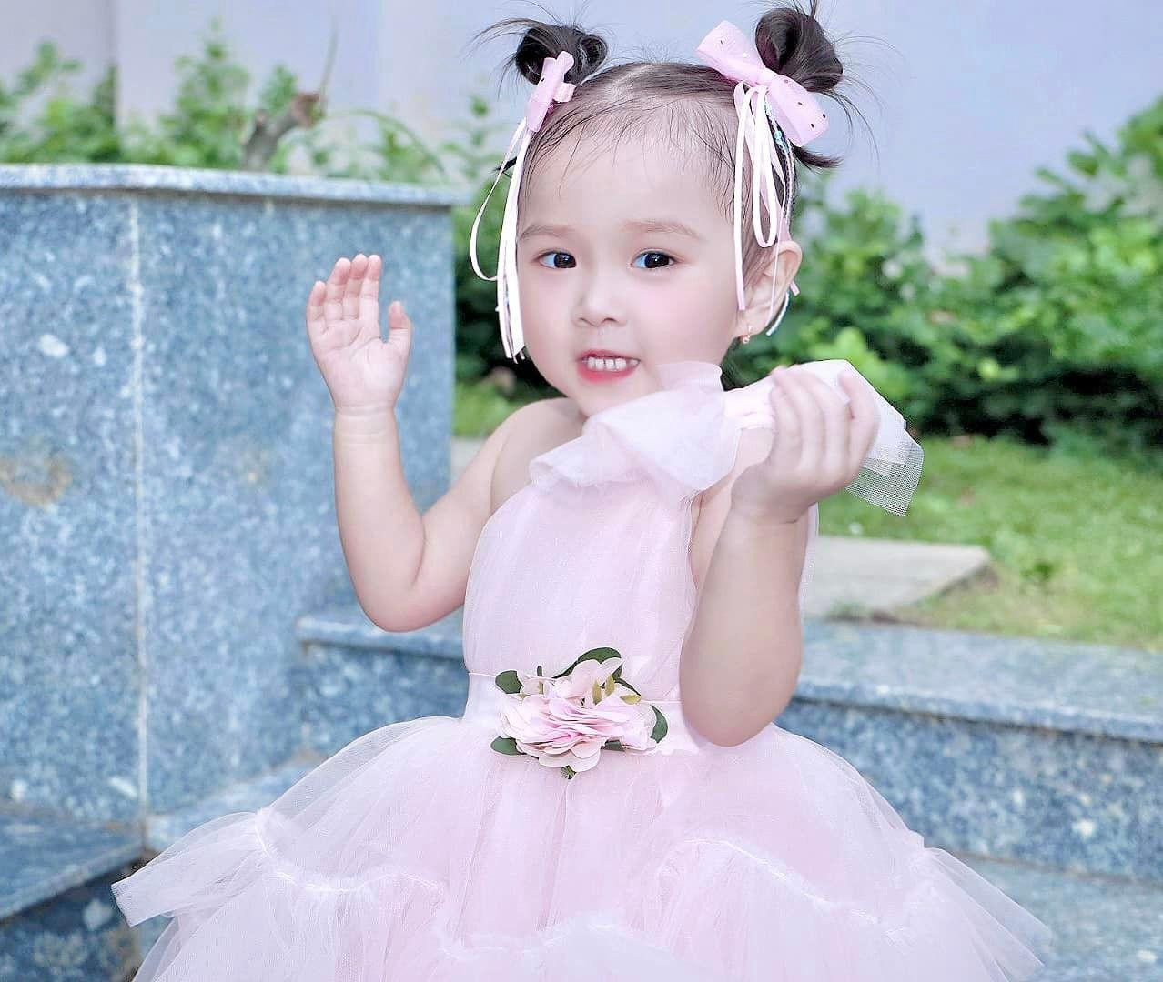 Trong loạt ảnh này, bé Lana diện một chiếc váy công chúa màu hồng, tóc được thắt nơ hai bên trông rất đáng yêu. Nhóc tỳ còn nhỏ nhưng rất tự tin trước ống kính, thậm chí còn tinh nghịch nằm trên bậc cầu thang để tạo dáng.