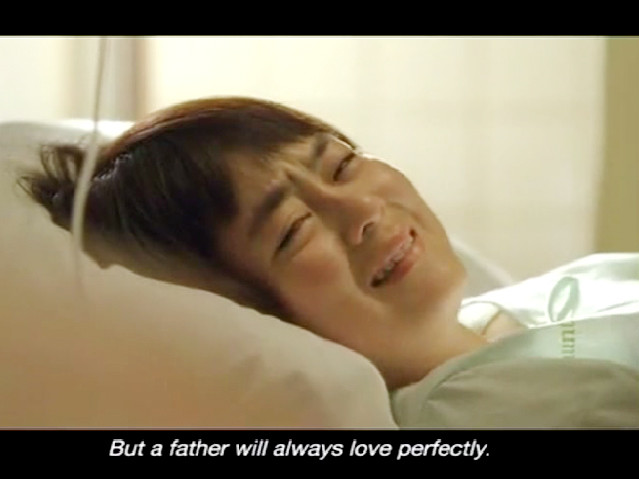 Ông đã kiệt sức và thiếp đi trên giường bệnh. Những ký ức ấu thơ hạnh phúc cùng cha chợt ùa về trong tâm thức con. Nhịp tim yếu ớt của cô gái dần đập mạnh trở lại. Cô tỉnh dậy, nắm lấy tay cha và chỉ biết khóc…