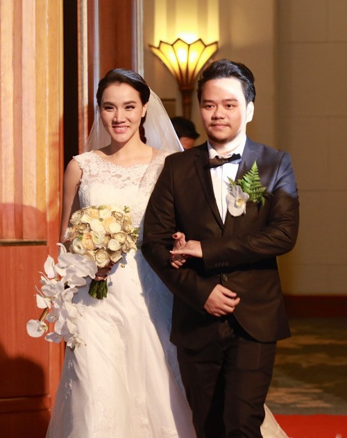 Bộ đôi bước vào khán phòng trong tiếng cổ vũ của bạn bè và người thân. Trước khi tổ chức cưới, hai người làm lễ đính hôn tháng 10/2014. Lúc đó, Trang Nhung đang mang bầu 3 tháng. Khi bé Vani tròn 9 tháng tuổi, họ lên kế hoạch tổ chức đám cưới tại Hà Nội và TP HCM.