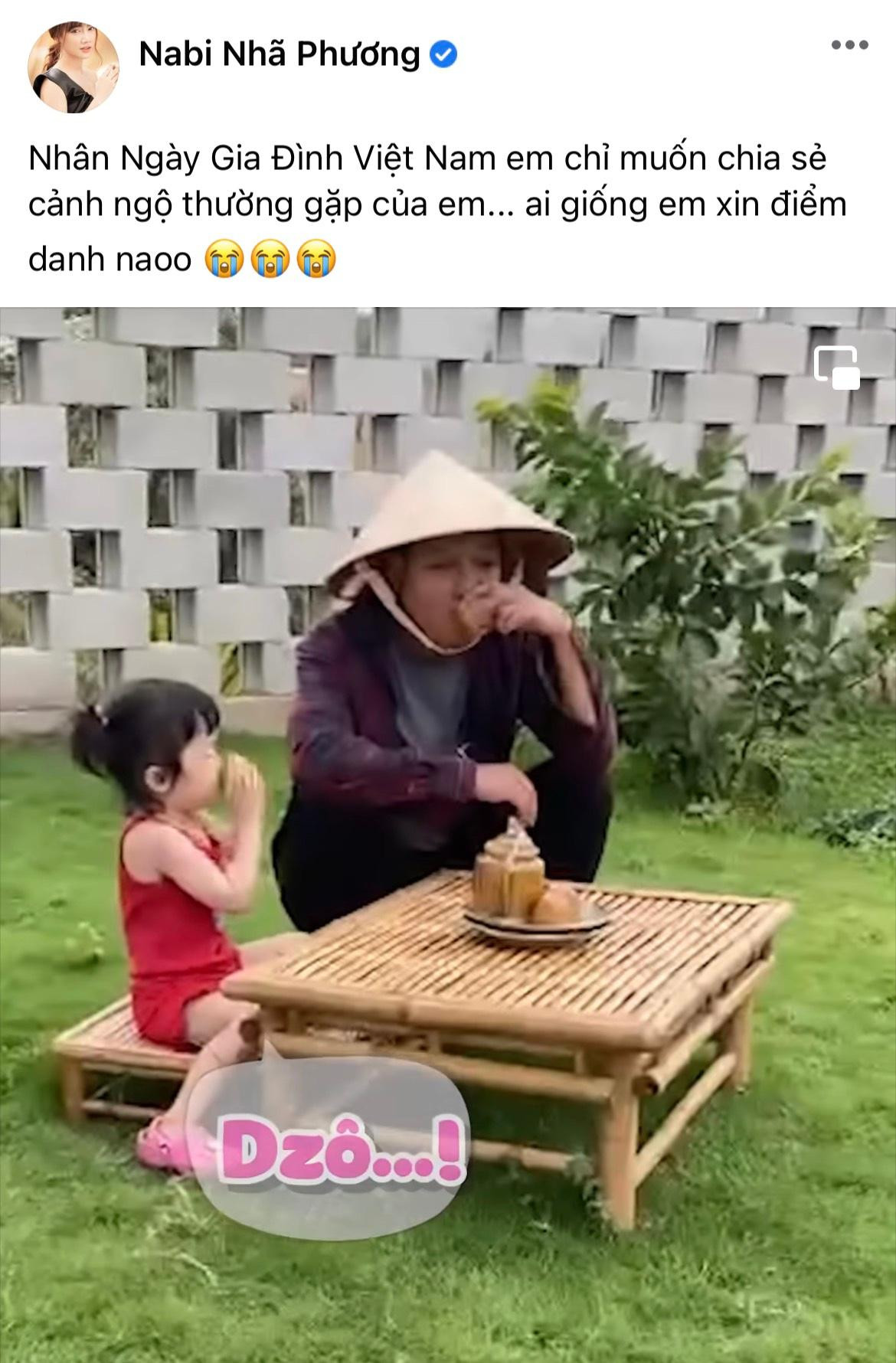 Hay nhân ngày Gia đình Việt Nam, Nhã Phương đăng video bị hai bố con Trường Giang trêu chọc rất đáng yêu. Trong đoạn video dài hơn 1 phút, cô bé Destiny vừa thể hiện sự tinh tế, vừa lém lỉnh khi pha trò cười khiến cộng đồng mạng được phen "đổ rầm rầm".