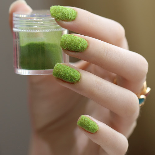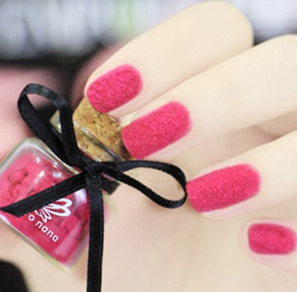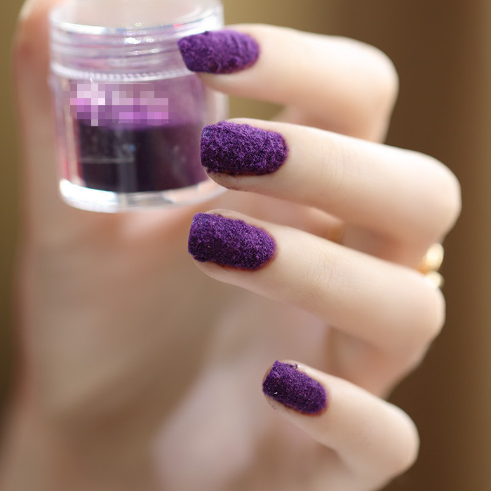 Cách làm kiểu nail cũng cực đơn giản, bạn chỉ cần sơn một lớp sơn không màu và cho ngón tay vừa sơn xong vào lọ đựng những sợi nhung nhỏ và chăm chút lại một xíu. Vậy là bạn đã có ngay một kiểu nail nổi bật cho mùa thu này rồi đấy!