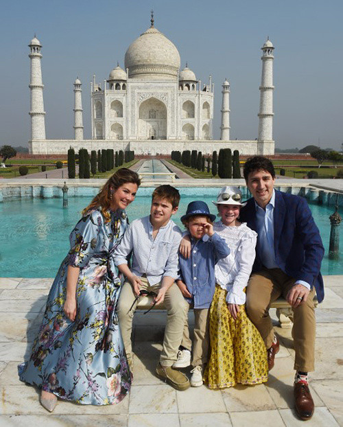 Gia đình thủ tướng Canada chụp ảnh trước đền Taj Mahal ở Agra.