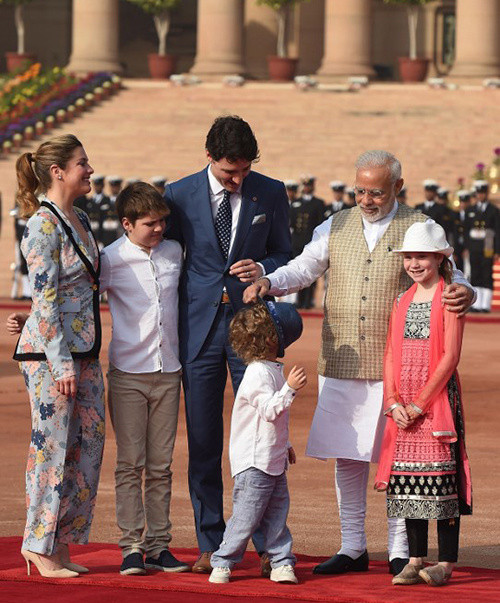 Ông Trudeau bắt đầu thăm Ấn Độ vào đầu tuần trước cùng phu nhân Sophie Gregoire và các con là Xavier, 10 tuổi, Ella-Grace, 9 tuổi và Hadrien, 3 tuổi. Cậu con trai út gây ấn tượng bởi khuôn mặt bầu bĩnh, mái tóc xoăn vàng và đặc biệt là sự hồn nhiên, nghịch ngợm đúng lứa tuổi của mình.