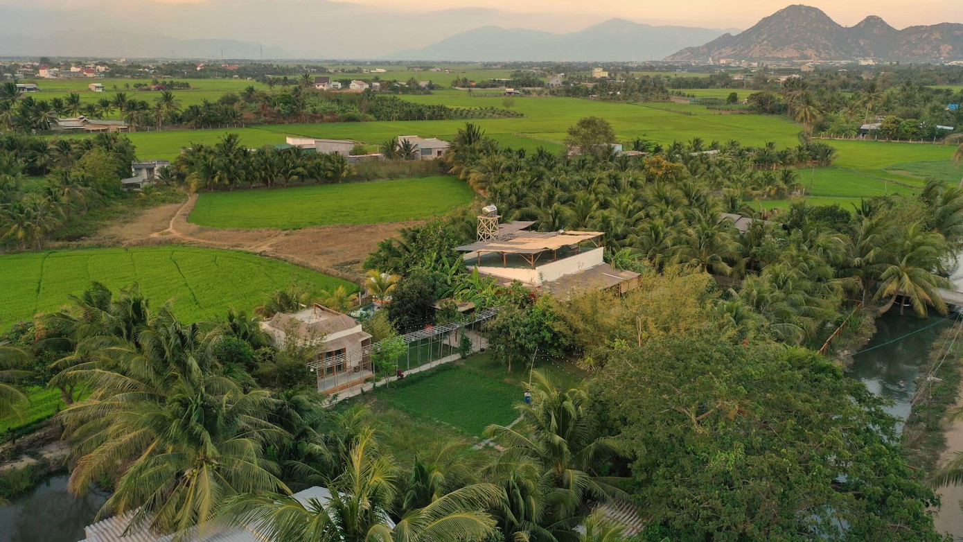 | Bao quanh nhà là khu vực trồng cây ăn trái, đan xen với vườn rau và bãi cỏ xanh mướt. |