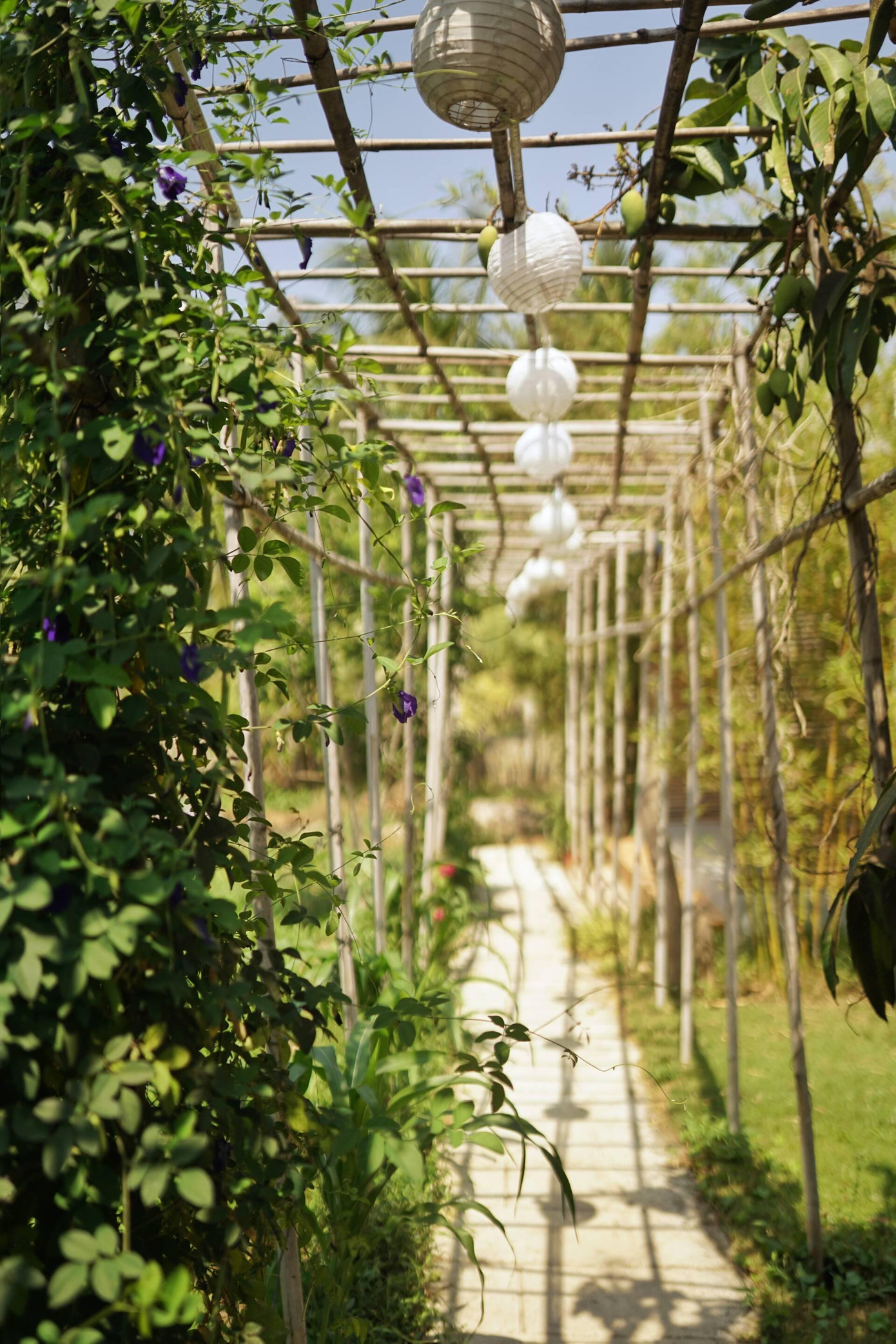 | Các lối đi trong vườn quanh nhà được quy hoạch và thiết kế như một khu du lịch sinh thái. |
