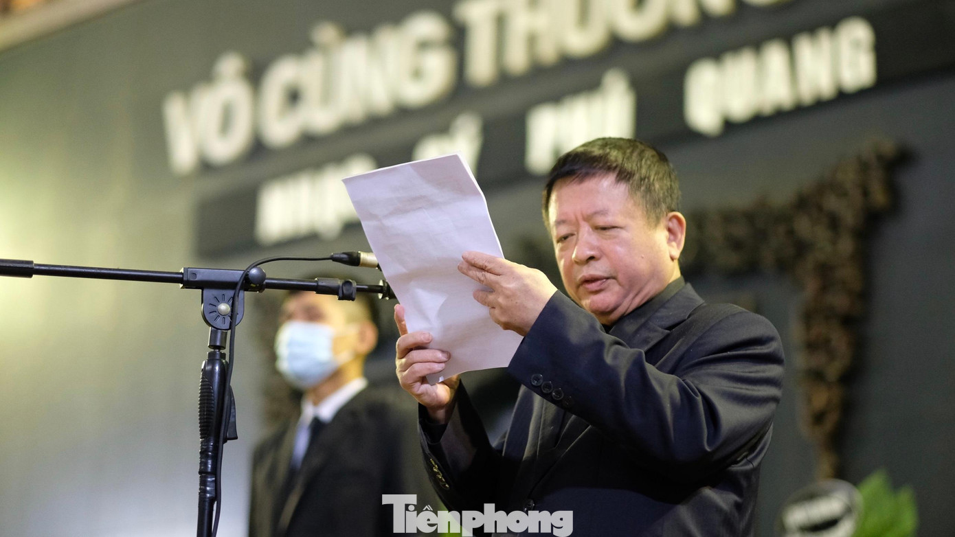 “Bố yêu quý ơi, hôm nay chúng con có mặt ở đây không phải để cùng bố ngồi uống cà phê, nghe bố trò chuyện mà để đưa bố về Phú Thọ- nơi bố sinh ra, gắn bó 5 năm. Nhờ bố, chúng con luôn ý thức làm người tử tế, giữ sự kiêu hãnh của một chính nhân. Gia tài bố để lại cho đời, để lại cho chúng con là sự tự hào. Hơn 600 tác phẩm bố để lại cho đời cũng là để lại niềm tự hào cho các con. Bố đã dạy chúng con nên người, nuôi dưỡng chúng con bằng tình yêu”, con trai nhạc sĩ Phú Quang rưng rưng.