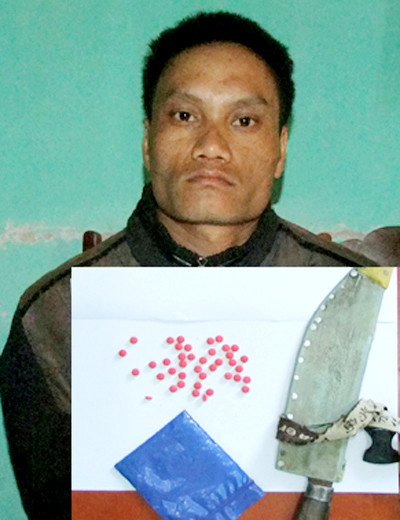 Khoảng 1h30 ngày 3/10, phát hiện Thao Văn Khai mang hàng cấm vào xã Trung Lý, huyện Mường Lát, lực lượng điều tra nhanh chóng ập đến khống chế. Tại chỗ, cảnh sát thu giữ 39 viên ma túy tổng hợp cùng nhiều hung khí và tang vật gây án.