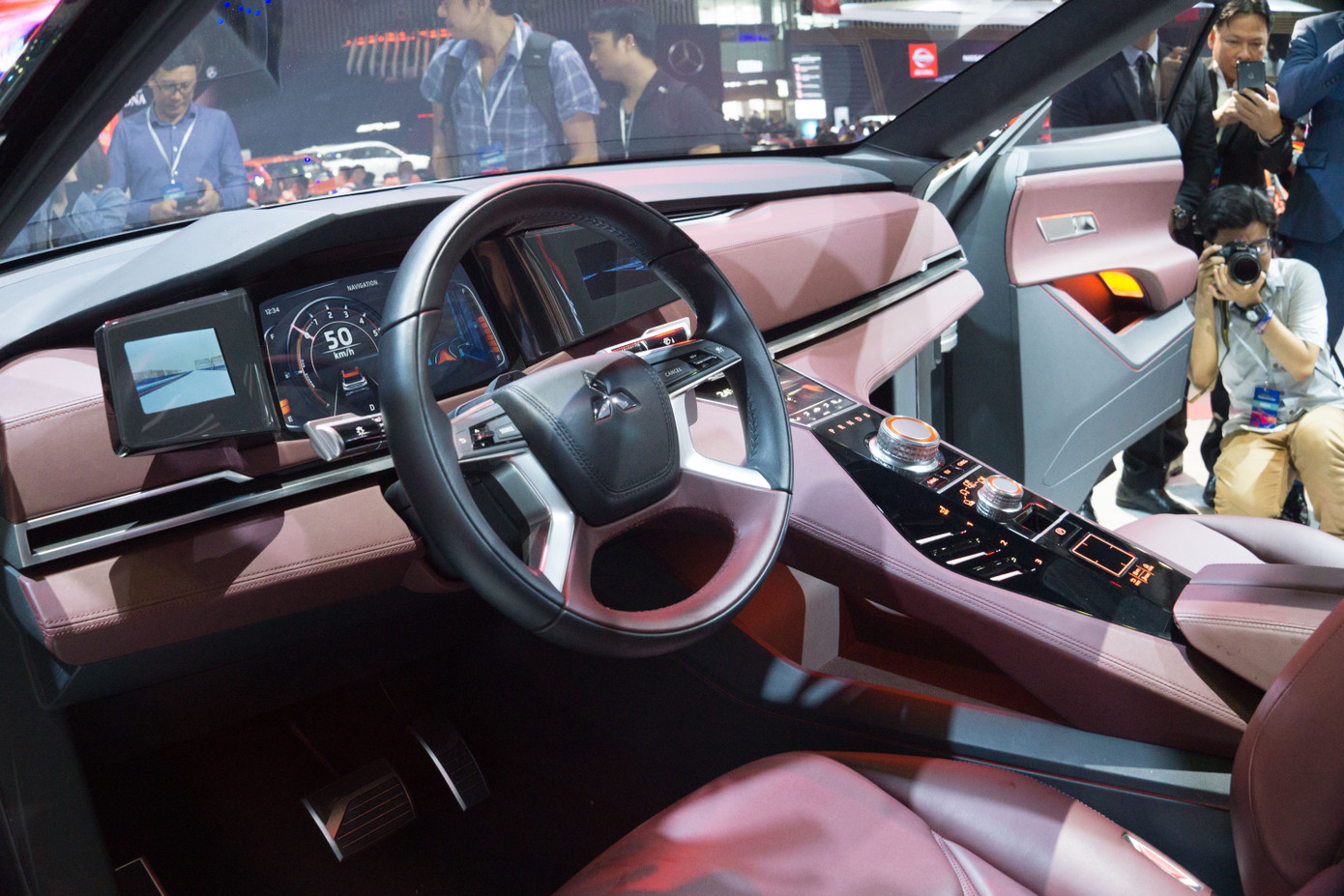 Bên trong nội thất sở hữu nhiều công nghệ hiện đại nhưng vẫn có cụm vô-lăng với hình dáng đặc trưng của Mitsubishi.