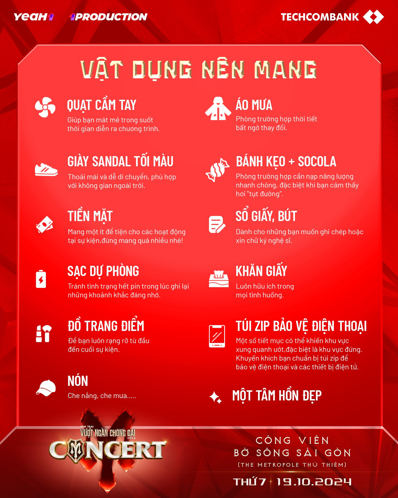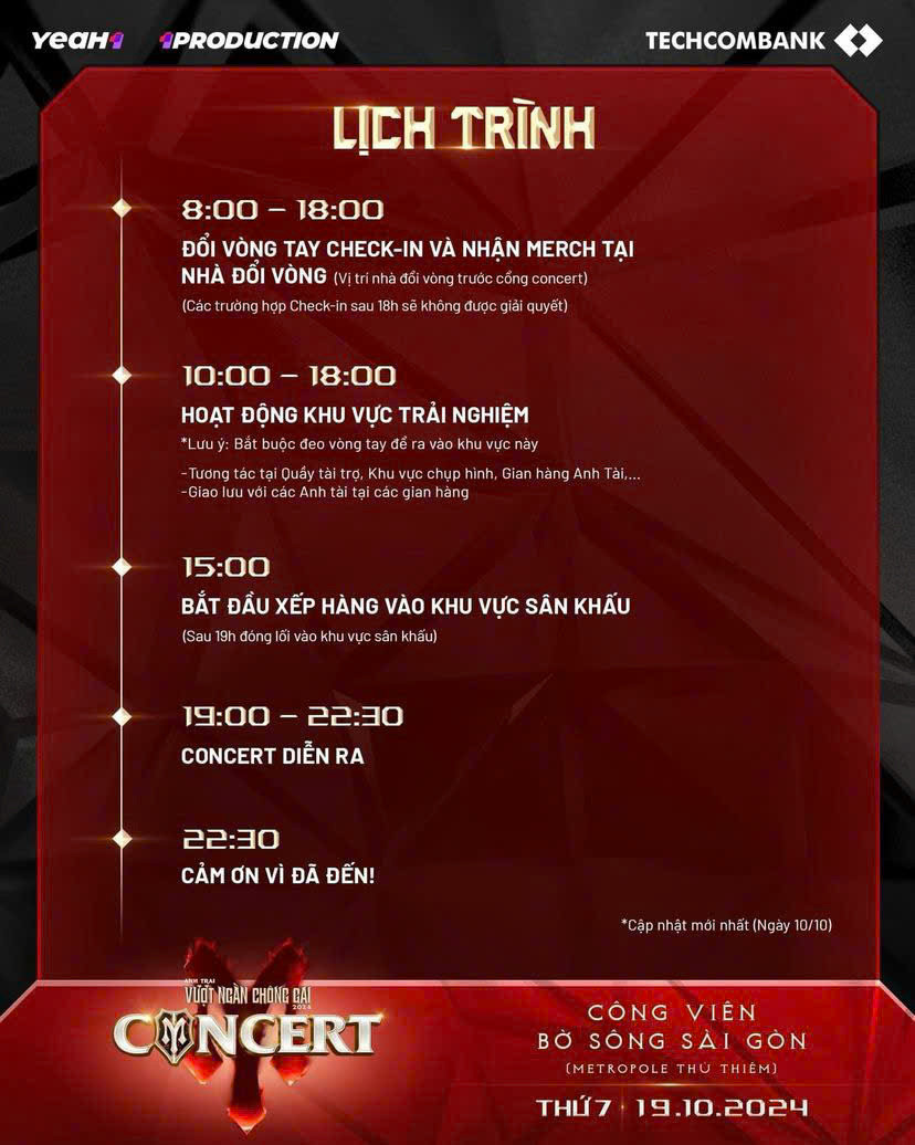 Bên cạnh đó, trên các trang mạng xã hội của chương trình, ê-kíp cũng tích cực cập nhật thông tin hữu ích cho khán giả, bao gồm sơ đồ hướng dẫn đường đi, lịch trình buổi hòa nhạc và những lưu ý quan trọng để đảm bảo mọi người có một trải nghiệm đáng nhớ nhất.
