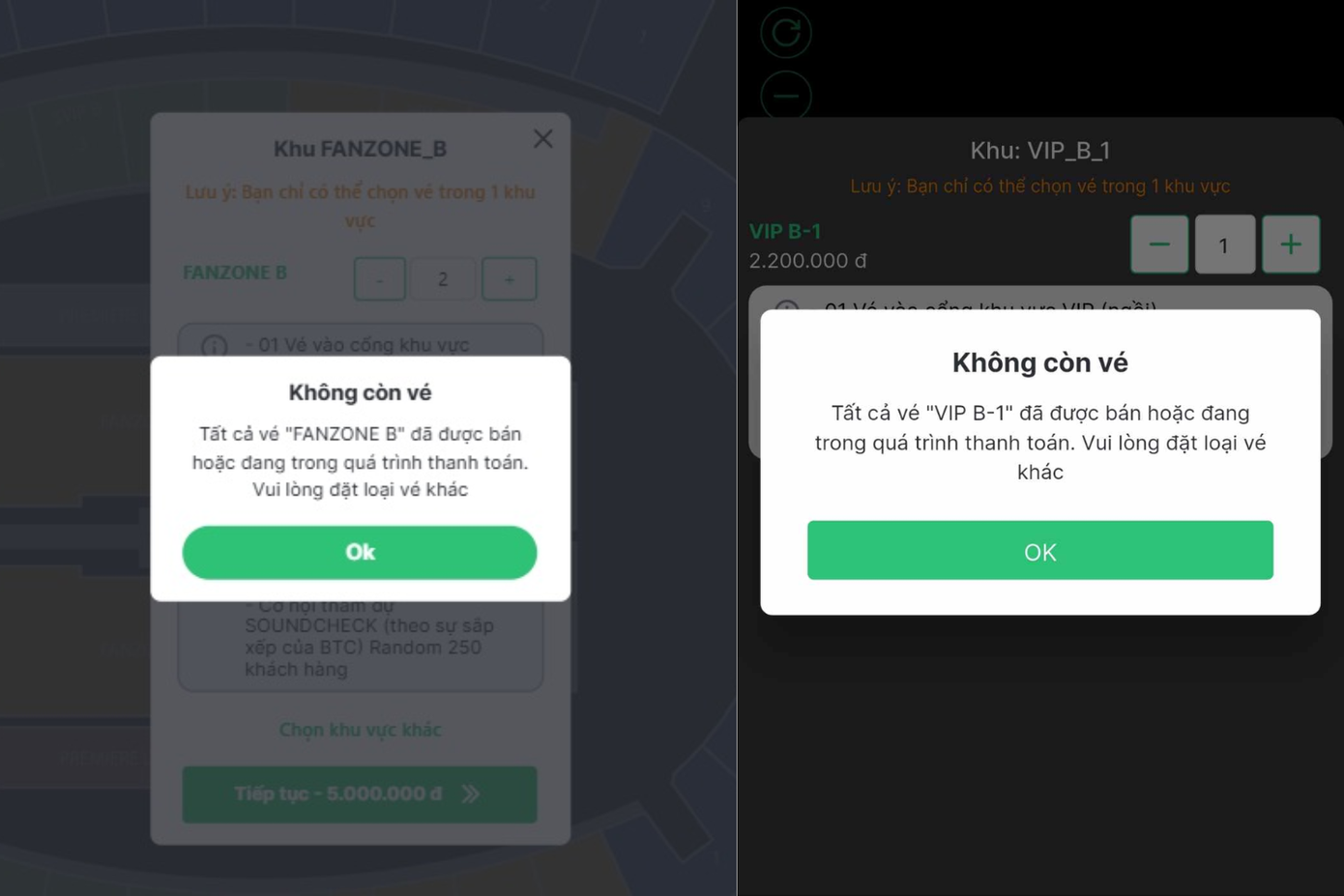 Trước đó, trong đợt mở bán sớm Early Bird, hệ thống cũng ghi nhận tình trạng tương tự. Thông báo từ ban tổ chức về việc "đang detect đơn số lượng lớn" cùng lời hứa "sẽ cố gắng mở ra các đơn lẻ" càng làm dấy lên lo ngại về tình trạng đầu cơ vé, khiến người hâm mộ hoang mang.