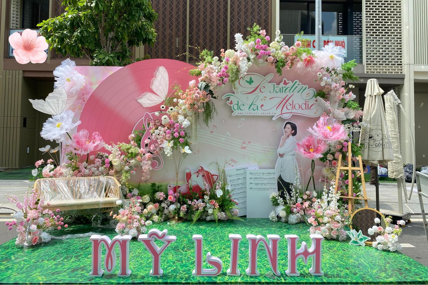 | Địa điểm check-in của "giáo chủ" Mỹ Linh được FC chuẩn bị tỉ mỉ, lên đèn lung linh. Ảnh: Threads: @bonmuatapbaycungmissfly |