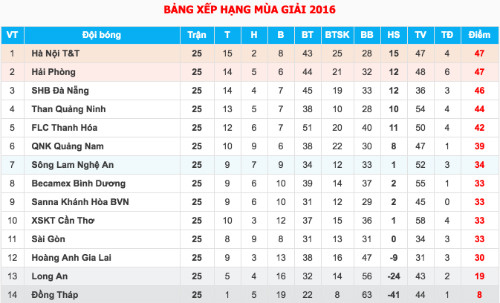 V-League chỉ còn một vòng nữa là khép lại nhưng hiện tại có tới bốn đội còn cơ hội vô địch là Hà Nội T&T (47 điểm), Hải Phòng (47 điểm), Đà Nẵng (46 điểm) và Quảng Ninh (44 điểm). VPF đã phải đặt mua tới bốn chiếc Cup, để ở bốn sân khác nhau để có thể trao thưởng trong mọi trường hợp xảy ra.