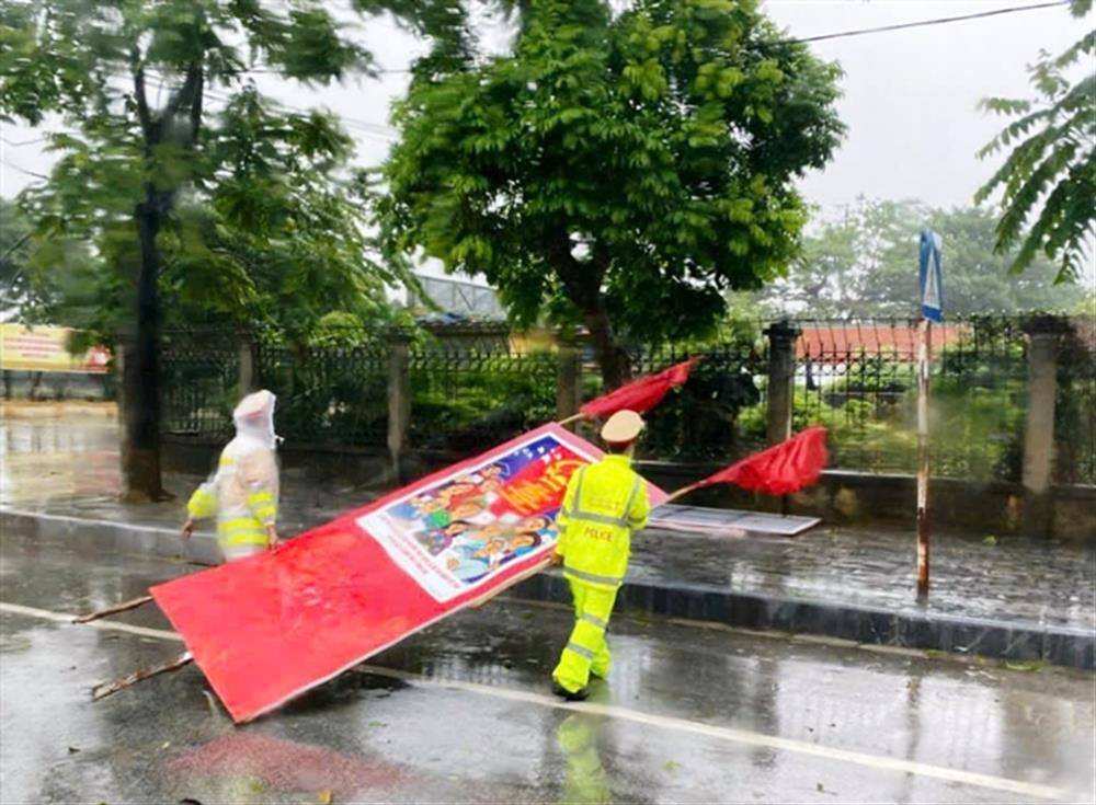 Ngay trong đêm 06/9 và ngày 07/9, lực lượng Công an địa phương đã chủ động phối hợp với các ban ngành đoàn thể của địa phương xuống giúp đỡ người dân trong việc ứng phó với bão số 3, như di chuyển người, tài sản đến nơi trú ẩn an toàn, chằng buộc, gia cố nhà cửa, lồng bè, hỗ trợ người dân các vật dụng, trang thiết bị, nhu yếu phẩm cần thiết…Trên các tuyến giao thông huyết mạch, các tuyền phố chính có cây xanh lực lượng Cảnh sát giao thông phối hợp với các đơn vị chức năng tổ chức hướng dẫn, phân luồng, cắm biển cảnh báo nguy hiểm, dọn dẹp thu gom, xử lý cây gẫy, đổ trên đường nhằm giúp giao thông luôn được thông suốt…
