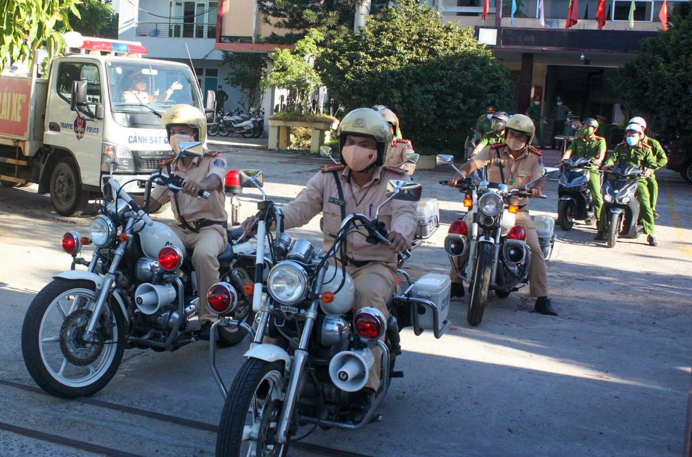 | Lực lượng công an các quận, huyện, phường xã trên địa bàn TP Đà Nẵng cũng đồng loạt ra quân. |
